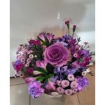 Wyjątkowo bogaty i tętniący energią bukiet w różnorodnych kolorach – od ciepłych żółci, pomarańczy i czerwieni, przez fiolety, róże i zielenie, aż po kremowe i białe akcenty. Ta wielobarwna kompozycja przyciąga wzrok i budzi pozytywne emocje, nie zawiera jednak tonów niebieskich, co nadaje jej harmonii i ciepła. Idealna na każdą radosną okazję.